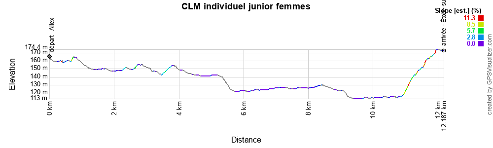 Individual time trial course - junior women - 12.2 km - Wednesday, October 1 - 9:30 a.m.