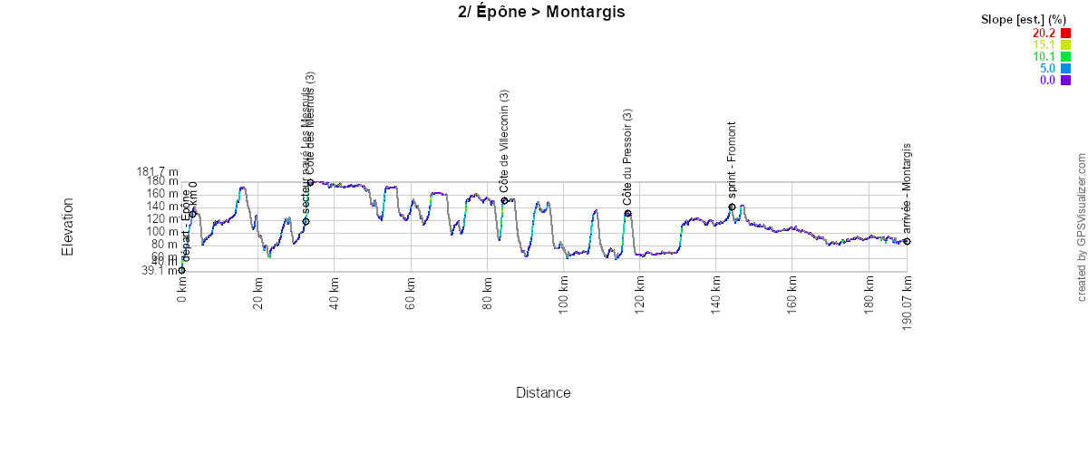 The second stage of Paris-Nice 2026 will start in the middle of the loop formed by the first stage, in Épône. The riders will then head south and, once they reach Les Mesnuls, they will first encounter a short cobbled section, passing in front of the local castle, then the Côte des Mesnuls (3rd category). Passing through Saint-Arnoult-en-Yvelines and Dourdan, they will continue on their way and then encounter the Côte de Villeconin and Côte du Pressoir, also category 3 climbs.They will then battle it out for the intermediate sprint in Fromont, before heading for the finish in Montargis.