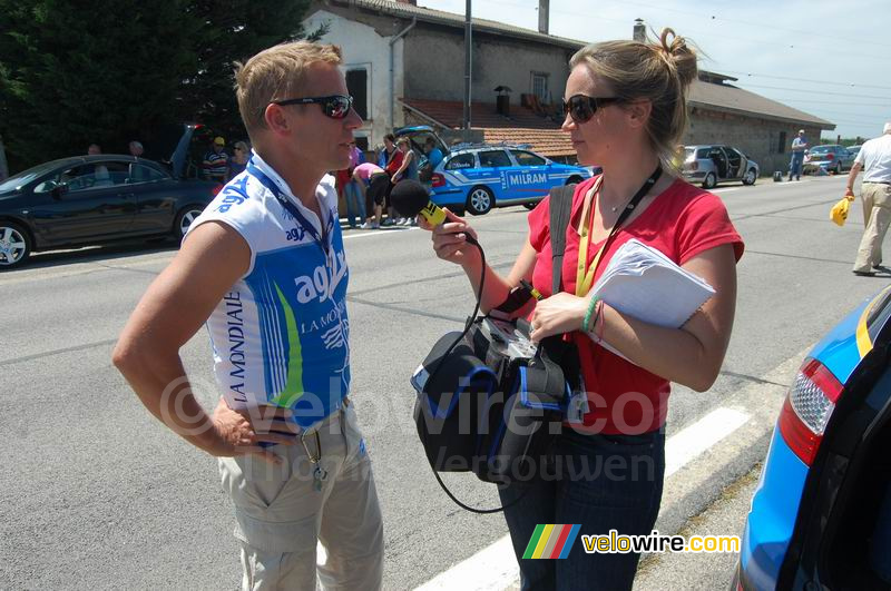 "Titi" (AG2R La Mondiale) wordt geïnterviewd door Alice Serrano van France Info