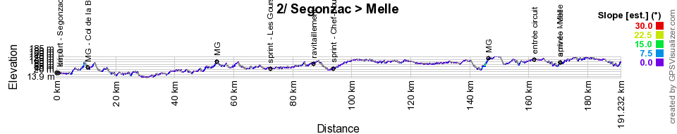Une étape courte, de 97,9 km, sera au programme le jeudi matin, au départ de la Place du Champ de Foire à Gençay. L'étape passe par Civray et le sprint intermédiaire à Chaunay avant de connaître son arrivée à Couhé après un tour sur un circuit final.Ci-dessous vous trouverez l'itinéraire horaire, le profil et la carte Google Maps de cette étape. Cliquez sur les images pour les ouvrir.