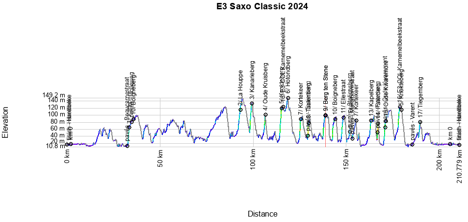 Below you'll find the timetable, Open Street Maps and profile of the E3 Saxo Classic 2024. Click on the images to open them.