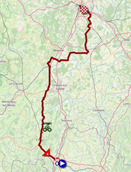 - Côte de Lhuis (4th category) at km 142.8 - ^ 383 m / 3 km at 4.8%.