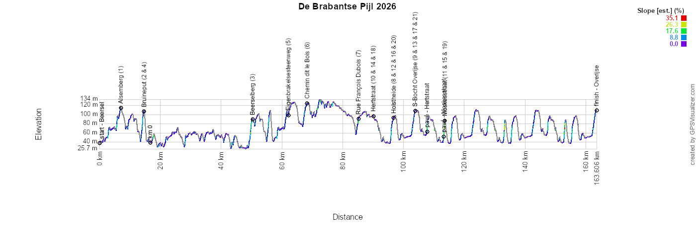 In dit artikel vindt u alle details over het parcours van de Brabantse Pijl 2026, op een OpenStreetMap-kaart die ook kan worden gedownload in Google Earth, het profiel van het parcours, het tijdschema en de lijst met renners die aan deze wedstrijd deelnemen.