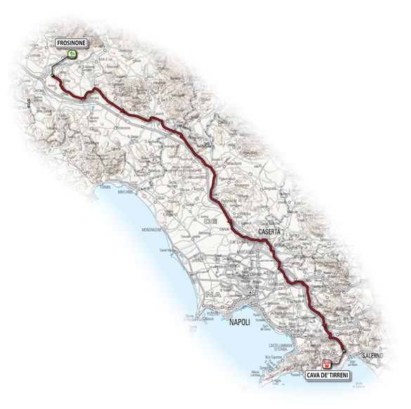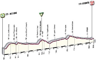 Na de eerste bergetappe, terug naar de vlakke etappes, waaronder deze van 188 kilometer tussen Frosinone en Cava De' Tirreni. Deze etappe, richting het zuiden en de voet van de Italiaanse laars volgt een vrijwel volledig vlak parcours.10/ dinsdag 18 mei 2010 - Avellino > Bitonto - 220 km