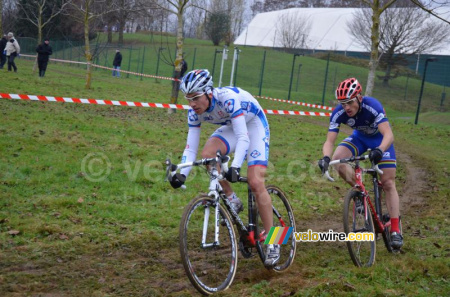 Even though Arnaud Démare (CC Nogent-sur-Oise, Jérémy Roy's team mate in the FDJ BigMat team from January 2012) passed the finish line first, just after the start, with his hands in the air and even though he stayed ahead for almost the whole first lap, quite rapidly Jérémy Roy managed to get away from the peloton. Almost immediately he found Christophe Delamarre of the Bleus de France team stuck in his wheel, apparently looking for the final victory in thisThe race was to last for 50 minutes and right from the moment where the leading duo was created, Jérémy did all the work by staying ahead, both on the straight parts of the circuit where he showed to clearly be the strongest of the two, and on the more winding parts, mainly in the forest of the Domaine des Gueules Cassées in Moussy-le-Vieux. Indeed, the rider of the Bleus de France team from Suresnes, World Champion cyclo cross in the 30 to 35 years category didn't do much efforts to help the FDJ rider from Tours ... like Jérémy said himself immediately after the race: He took the lead only once! Since we didn't even see that, that must not have lasted a very long time ...