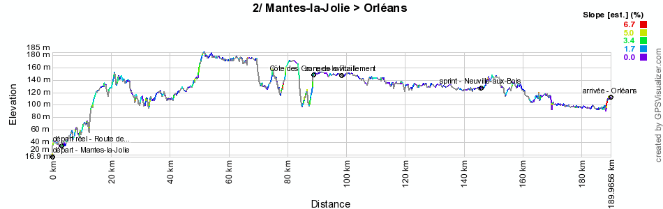 The second stage will start a bit more north-west of Paris, in Mantes-la-Jolie. After the start on the Pont de Limay, the riders will go south until they arrive in Houdan where they'll turn towards Rambouillet and to the only climb of this stage, the Côte des Granges-le-Roi (3rd category).Just aftet this climb, they can get some new energy in the feeding zone close to Authon-la-Plaine. They'll continue their descent southwards and will get to the intermediate sprint of the stage in Neuville-aux-Bois.