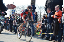 At about thirty kilometers from the finish, the two first groups merge while Cancellara shows he really merits the nickname Spartacus when he acccellerates and tries to join the 8 leading riders. When he gets back on them, Stijn Vandenbergh and Sep Vanmarcke decide that they don't want to give in to the Swiss rider that easily and they get away at the head of the breakaway. In cobble stone section number 6 Spartacus again starts chasing, with Zdenek Stybar in his wheel and at 21 kilometers from the finish a new group of four riders is leading the race.