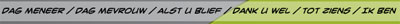 - pour la version néerlandaise / belge (ça doit être la même chose d'ailleurs mais pourtant il y a les deux drapeaux) on utilise les formules de politesse en disant 'bonjour monsieur' / 'bonjour madame' / 's'il vous plaît' / 'merci' / 'au revoir' / 'je suis'