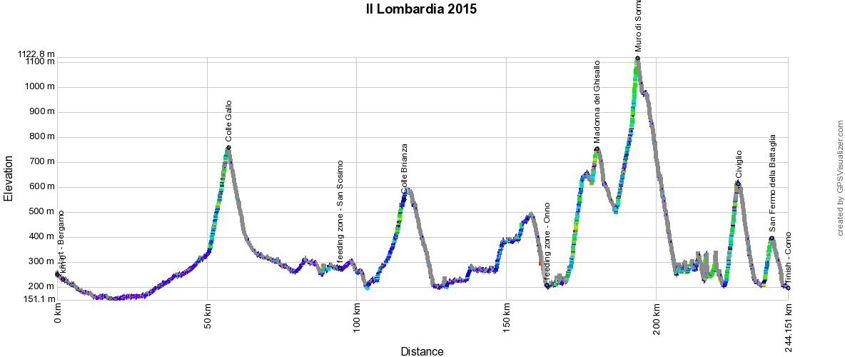 Le parcours du Tour de Lombardie 2015 sur Google Maps, l'itinéraire horaire et le profil de la course