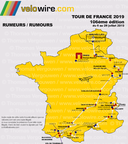 Le tableau des étapes du Tour de France 2019 sur la base des rumeurs