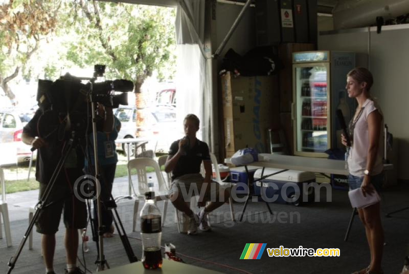 Cameron Meyer (Garmin-Cervélo) being interviewed